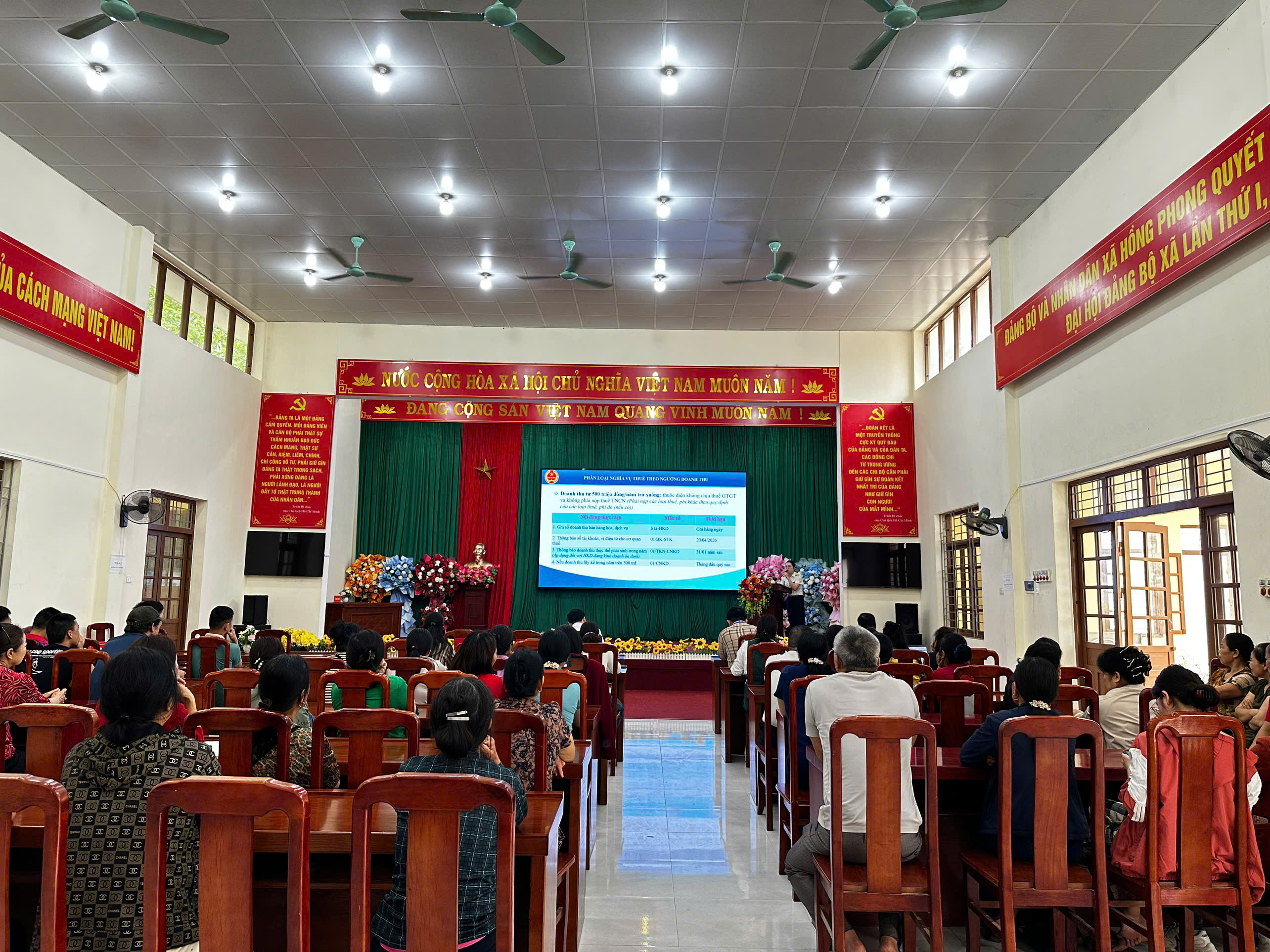 Lãnh đạo UBND xã, các cán bộ chuyên môn phòng Kinh tế và cơ quan Thuế cùng đông đảo bà con kinh doanh tham dự hội nghị