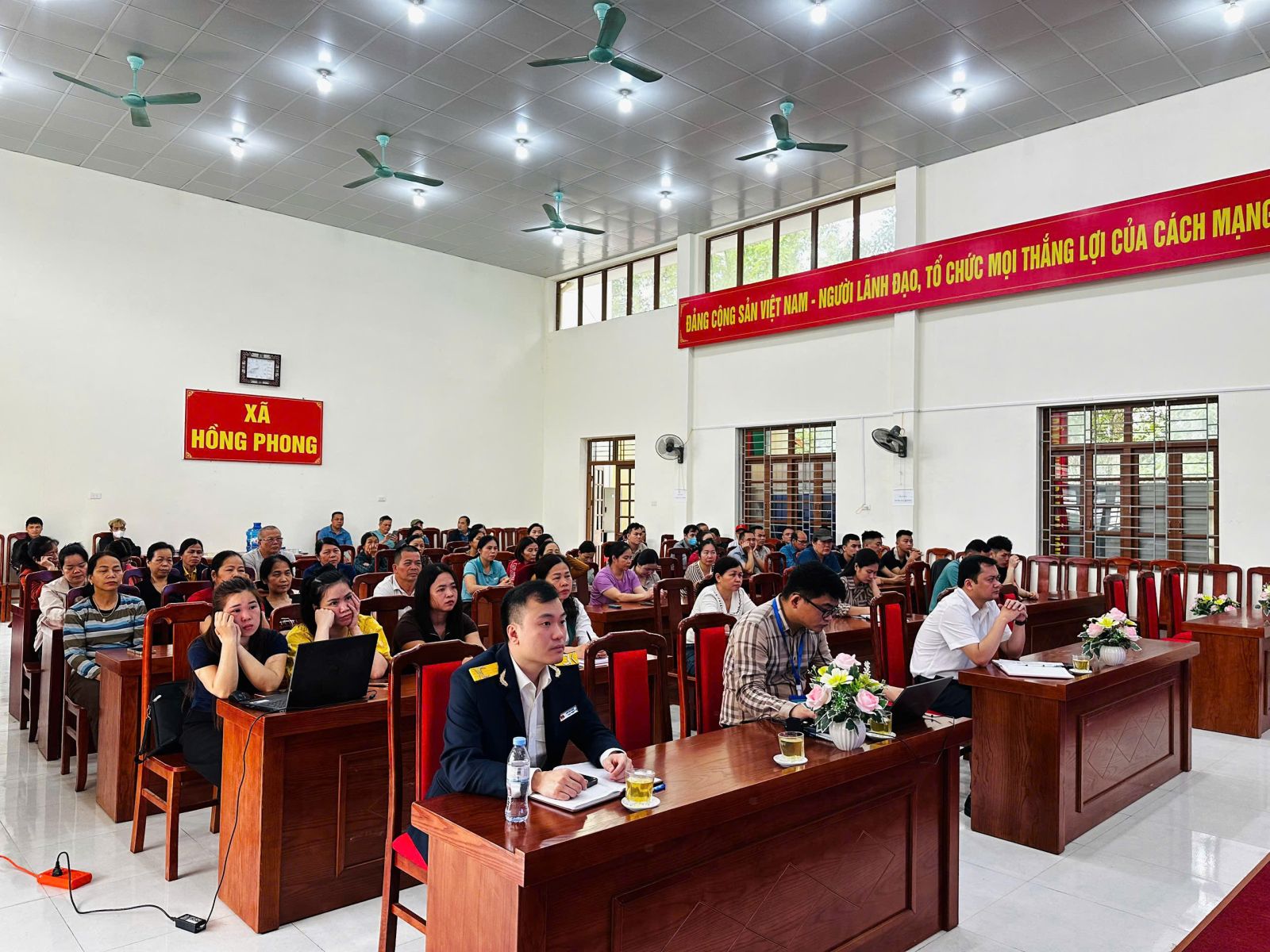 Ngày 27/03/2026, UBND xã Hồng Phong phối hợp cùng Chi cục Thuế tổ chức Hội nghị tuyên truyền, hướng dẫn chính sách thuế cho các hộ và cá nhân kinh doanh trên địa bàn. Dự hội nghị có đồng chí Hoàng Thanh Tuấn – Phó Bí thư Đảng ủy, Chủ tịch UBND xã; đại diện Chi cục Thuế khu vực cùng các cán bộ chuyên môn phòng Kinh tế và đông đảo bà con kinh doanh tại địa phương.