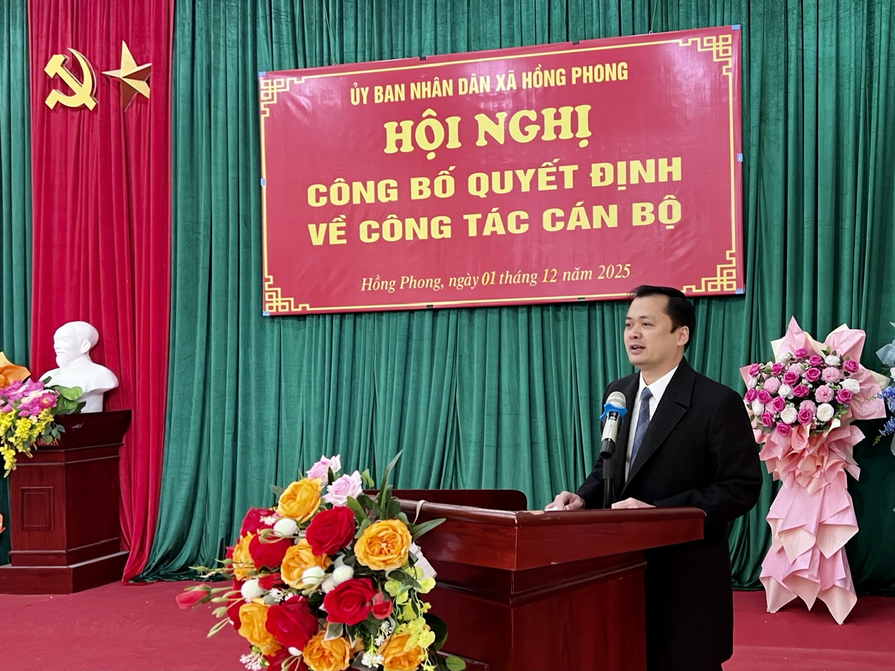 Sáng ngày 01/12/2025, tại Nhà văn hóa xã Hồng Phong, Ủy ban nhân dân xã tổ chức Hội nghị công bố Quyết định của UBND xã về công tác cán bộ đối với chức danh Hiệu trưởng các trường học trên địa bàn.