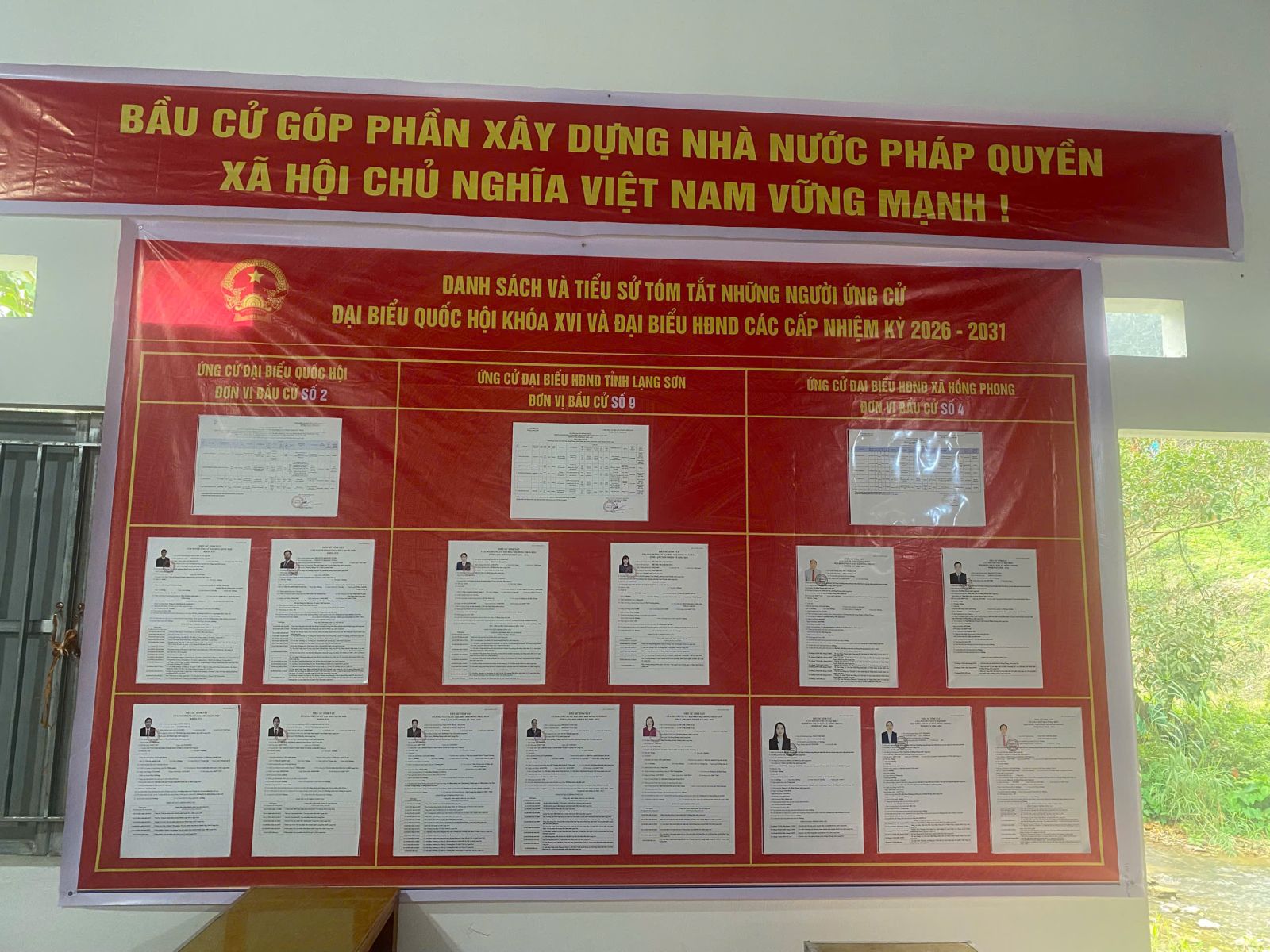 Xác định công tác tuyên truyền là chìa khóa để cử tri nắm vững quyền lợi và trách nhiệm, Ủy ban Bầu cử xã Hồng Phong đã chú trọng trong cách thức tiếp cận thông tin. Tại các bảng tin công cộng, danh sách cử tri và tiểu sử tóm tắt của các ứng cử viên được trình bày khoa học, dễ hiểu, giúp bà con nhân dân dù bận rộn công việc đồng áng hay kinh doanh vẫn có thể tranh thủ ghé qua nghiên cứu, cân nhắc lựa chọn những đại biểu ưu tú nhất.