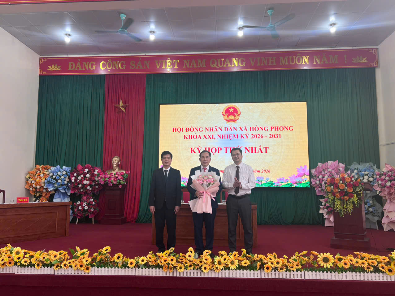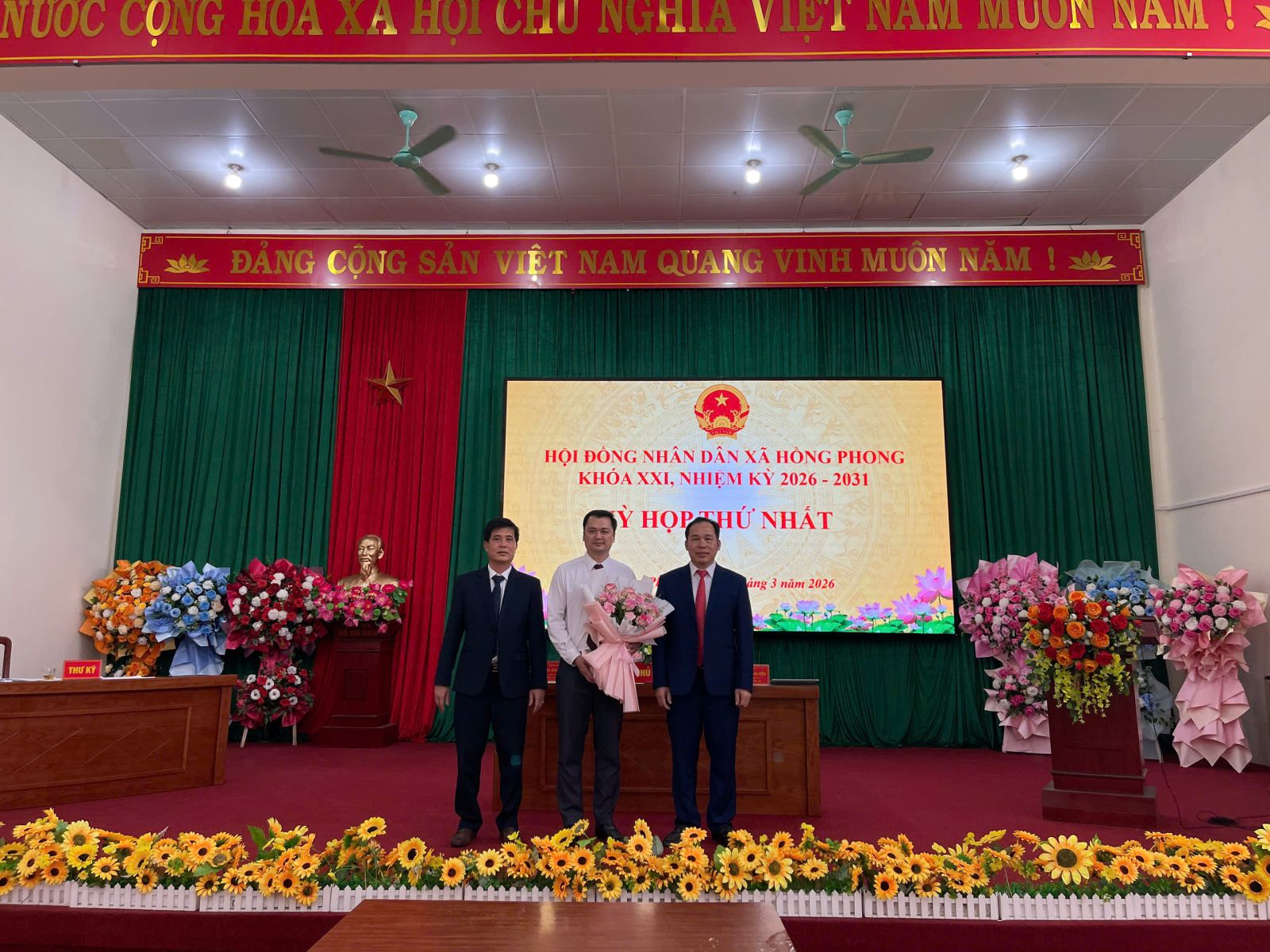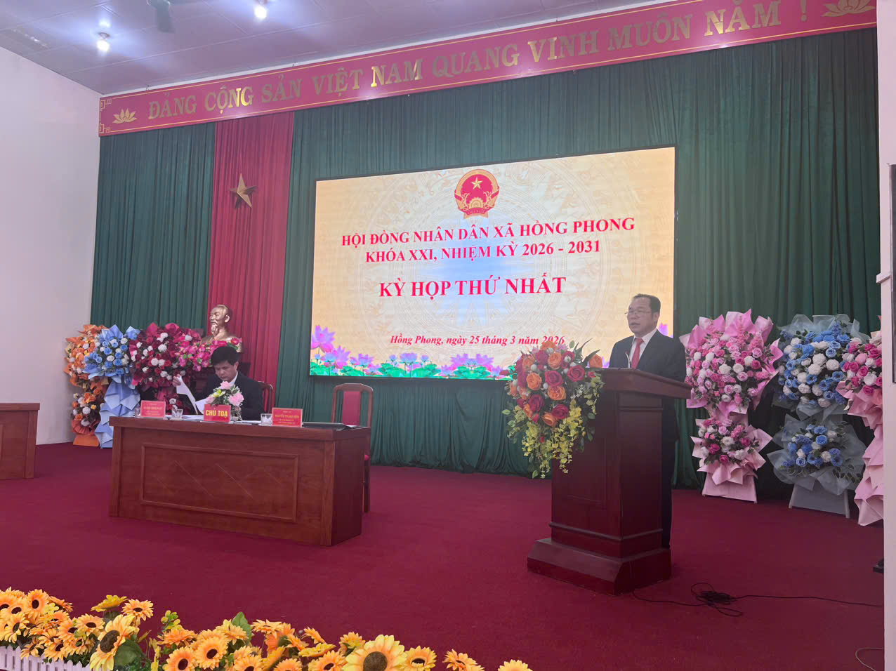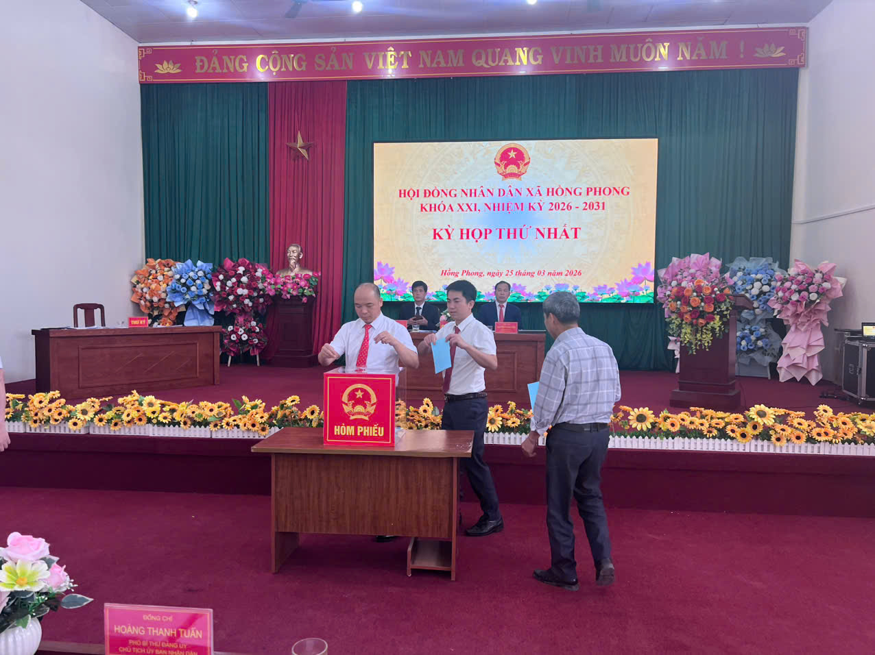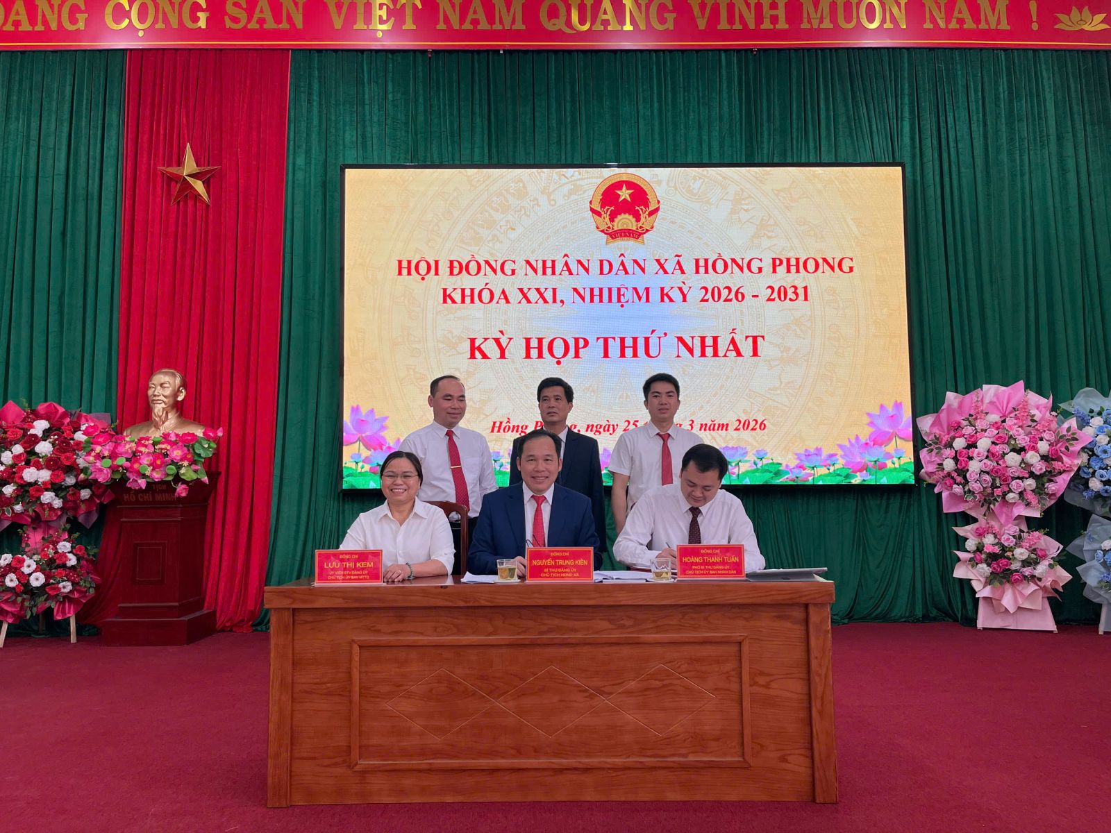 Ngày 25/3/2026, Hội đồng nhân dân xã Hồng Phong khóa XXI, nhiệm kỳ 2026 – 2031 đã long trọng tổ chức Kỳ họp thứ Nhất khóa XXI, nhiệm kỳ 2026-2031. Đây là sự kiện chính trị quan trọng nhằm kiện toàn các chức danh lãnh đạo chủ chốt của bộ máy chính quyền địa phương và quyết nghị các nội dung chiến lược theo quy định của pháp luật. Tham dự kỳ họp có đồng chí Nguyễn Trung Kiên - Bí thư Đảng ủy, Chủ tịch HĐND xã; đồng chí Hoàng Thanh Tuấn - Phó Bí thư Đảng ủy, Chủ tịch UBND xã; cùng các đồng chí đại diện Thường trực Đảng ủy, HĐND, UBND, Ủy ban Mặt trận Tổ quốc Việt Nam xã, Công an xã và sự có mặt đông đủ của 16/16 đại biểu HĐND xã khóa XXI.