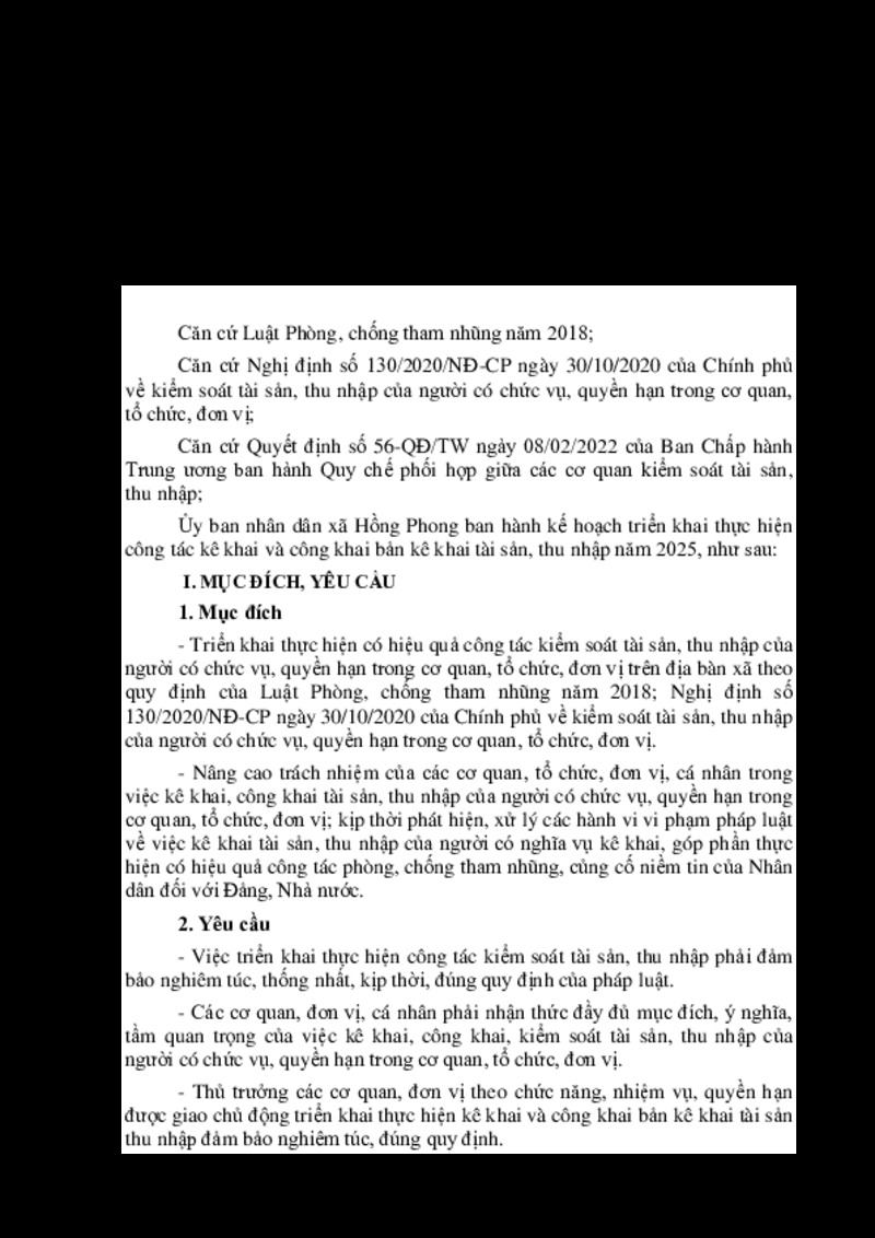| Tiêu đề văn bản | KẾ HOẠCH Triển khai thực hiện công tác kê khai và công khai tài sản, thu nhập năm 2025 | ||