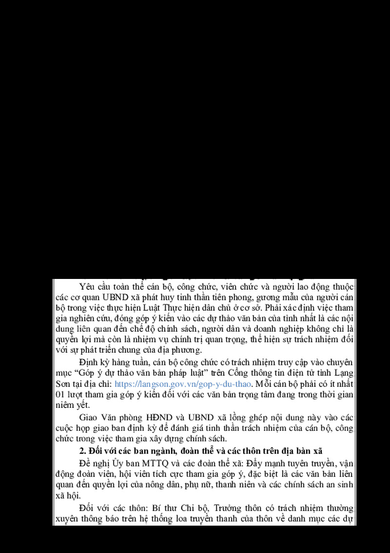 | Tiêu đề văn bản | V/v tăng cường tham gia góp ý nội dung dự thảo văn bản quy phạm pháp luật đăng tải công khai trên Cổng Thông tin điện tử tỉnh Lạng Sơn | ||