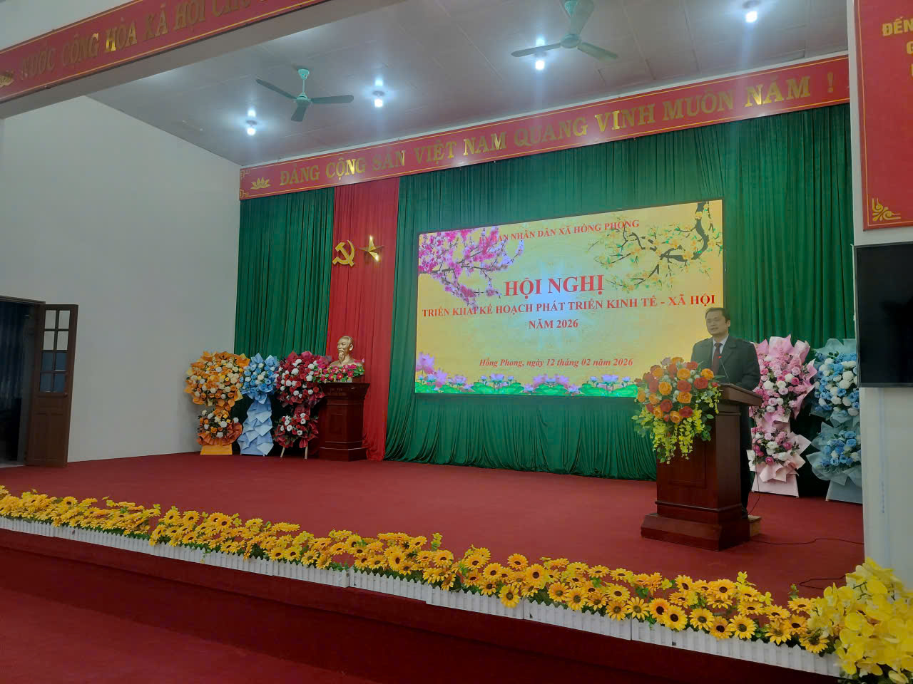Cũng tại hội nghị, Đảng ủy, HĐND, UBND xã đã chính thức triển khai Kế hoạch phát triển kinh tế - xã hội năm 2026. Việc giao chỉ tiêu kế hoạch và quán triệt các nội dung quan trọng của Nghị quyết Đại hội XIV của Đảng ngay tại buổi lễ thể hiện quyết tâm cao độ của hệ thống chính trị xã Hồng Phong trong việc thực hiện thắng lợi các mục tiêu tăng trưởng, giữ vững quốc phòng - an ninh và nâng cao chất lượng đời sống cho Nhân dân trên địa bàn trong giai đoạn mới.